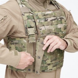 L'inconvenient majeur des gilet chest étant la nécessité d'une aide extérieur afin de correctement ajuster et équiper le gilet avant chaque opération. C'est pourquoi Warrior, avec le concourt des Forces Spéciales, a créé cette variante du gilet avec un système d'ouverture à l'avant comprenant un zip très résistant, une fermeture Velcro complète de 5 cm renforcée par 3 boutons préssions pour plus de sécurité. Ce qui permet à l'utilisateur de s'équiper et se déséquiper de son gielt chest 901 rapidement et sans aucune aide.