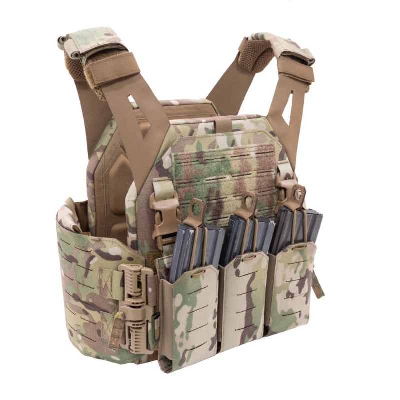 Il est livré en standard avec un rabat avant MOLLE amovible maintenu en place par 2 clips QASM verticaux et une bande auto-agrippante qui permet d’être rapidement remplacé par une grande variété de panneaux préconfigurés spécifiques aux armes et aux missions.